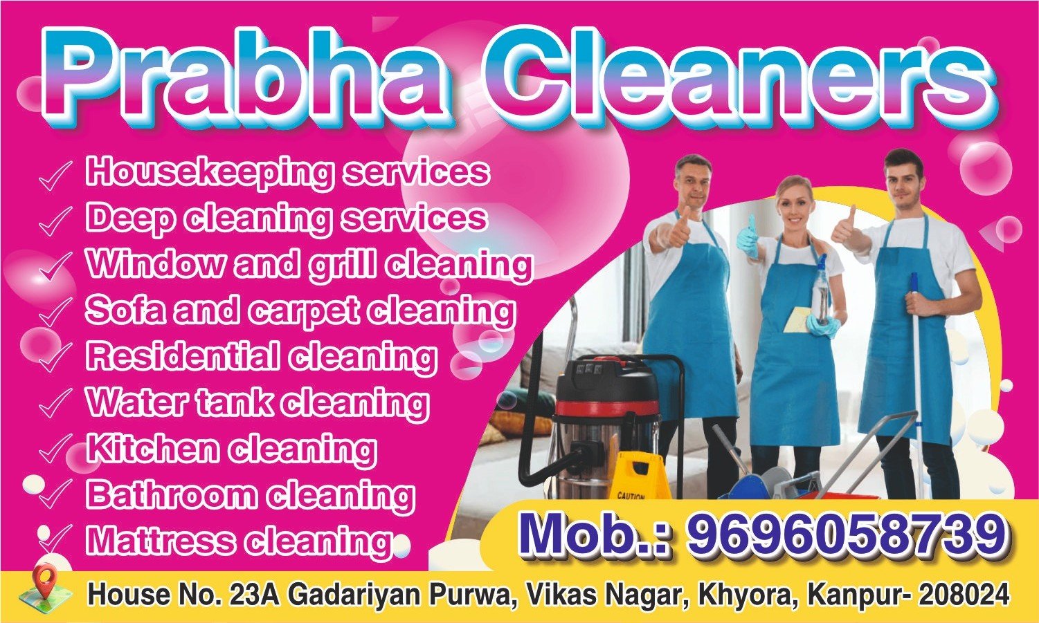 Welcome to Prabha Cleaners, your trusted partner for professional cleaning services in Kanpur. We know how important it is to keep your home and workplace clean, fresh, and hygienic. Our team of trained professionals uses modern equipment and safe cleaning methods to give you the best results at affordable prices.